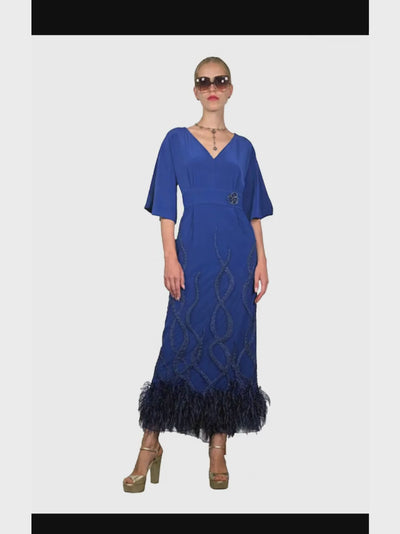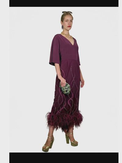 VESTIDO MIDI MARIPOSA PLUMAS