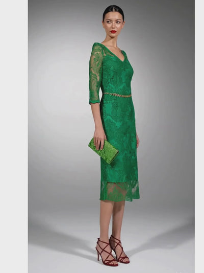 VESTIDO LAPIZ TUL BORDADO