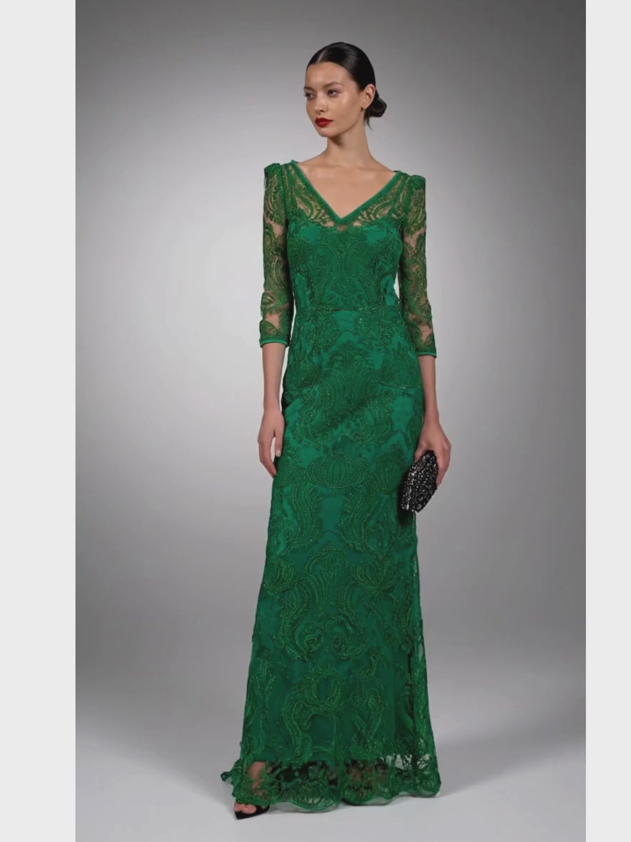 Descubre la elegancia atemporal de nuestro vestido lápiz en tul bordado. Este diseño largo combina sofisticación y movimiento, con detalles de bordado que capturan la luz de manera cautivadora.